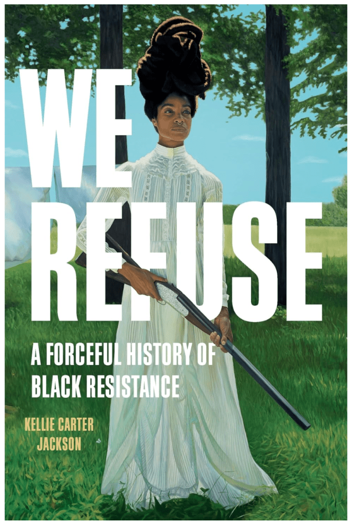 There are some books that can and should be judged by their covers, and this next book is one of them. We Refuse: A Forceful History of Black Resistance by Kellie Carter Jackson argues against reducing resistance to white supremacy to a simple binary between Dr. Martin Luther King Jr.’s nonviolence and Malcolm X’s “by any means necessary.” We Refuse examines a breadth of responses to white oppression, offering a fundamental corrective to the historical record and a path toward liberation.